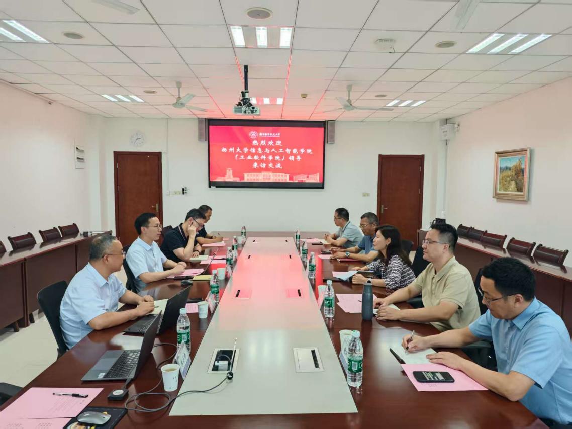 9月8日,扬州大学信息与人工智能学院(工业软件学院)院长刘维,副院长郭志波、裔扬、高锐一行来bw必威西汉姆联官网调研交流,bw必威西汉姆联官网院长黄圣君,副院长赵彦超、周宇及相关老师参加会议。会议由黄圣君主持。