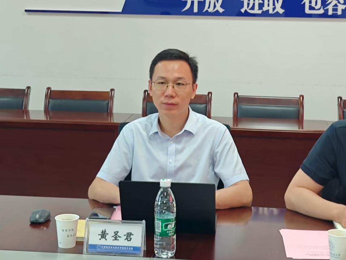 黄圣君首先代表学院对来访的各位领导及老师表示热烈欢迎,并介绍了学院的发展历程、人才培养、学科建设、科学研究等方面的基本情况。